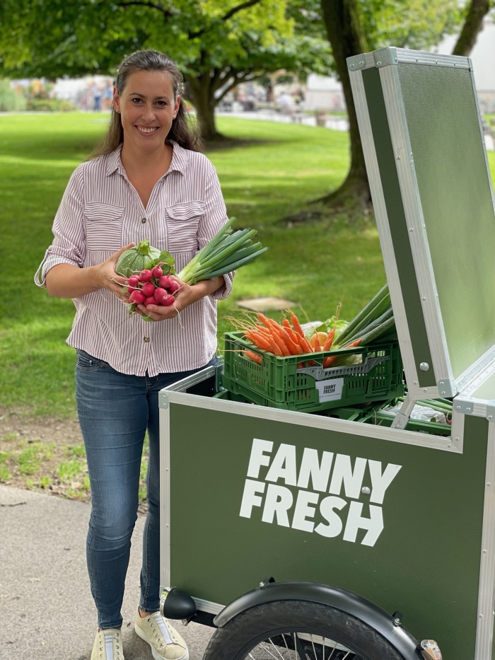 Franziska Adam-Laubenbacher ist Gründerin von Fanny Fresh – einem neu gegründeten Salzburger Unternehmen, das regionale Gemüsekisterl CO2-neutral mit dem Lastenrad zu den KundInnen liefert.